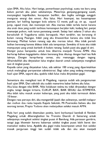 memakan waktu lama. Apabila aku gagal maka kesempatan untuk ikut seleksi