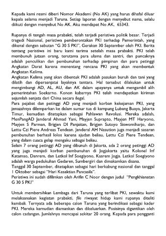tentang peristiwa ini baru kami terima setelah masa prabakti. PKI telah