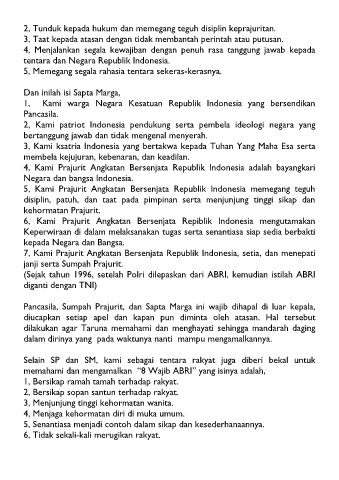 2, Tunduk kepada hukum dan memegang teguh disiplin keprajuritan.