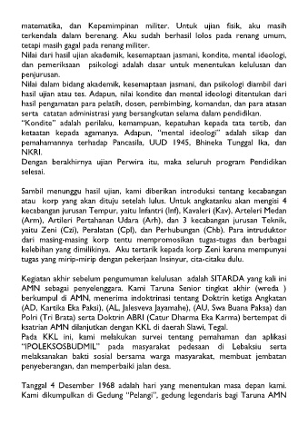 matematika, dan Kepemimpinan militer. Untuk ujian fisik, aku masih