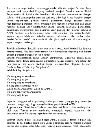 bangsa dan negara. Aku tidak akan pernah melupakanmu. Inilah almamater