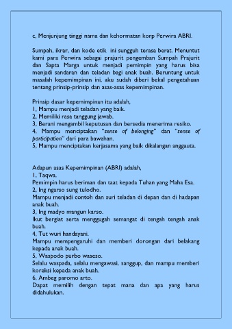 c, Menjunjung tinggi nama dan kehormatan korp Perwira ABRI.