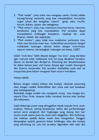 5. “Moh madon”, yaitu tidak mau melakukan perbuatan zina,