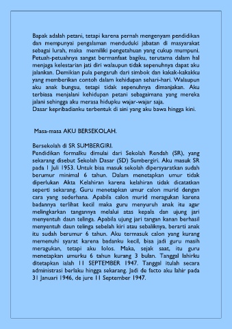 Bapak adalah petani, tetapi karena pernah mengenyam pendidikan