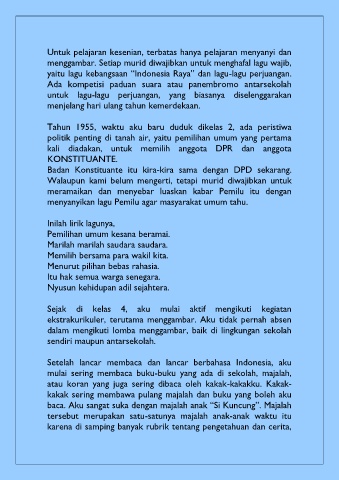 Untuk pelajaran kesenian, terbatas hanya pelajaran menyanyi dan