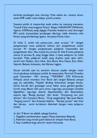 berbeda pandangan atau ideologi. Pada waktu itu, rasanya siswa-