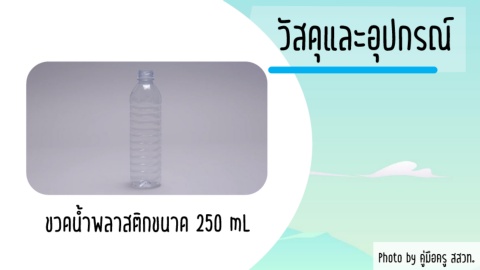 วัสดุและอุปกรณ์ ขวดน้้าพลาสติกขนาด 250 mL Photo by คู่มือครู สสวท.