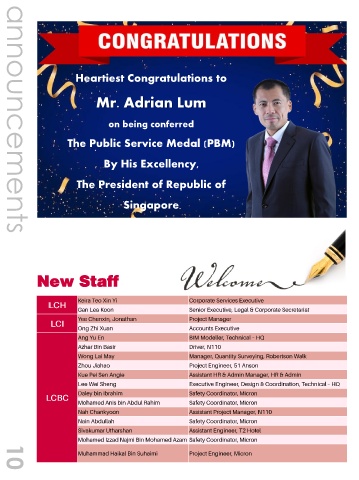 Heartiest Congratulations to Mr. Adrian Lum on being conferred The Public Service Medal (PBM) By His Excellency, The President of Republic of Singapore announcements New Staff 10