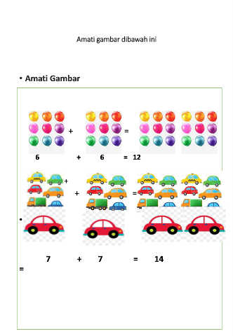 Amati gambar dibawah ini • Amati Gambar + = 6 + 6 = 12 + + + = • 7 + 7 = 14 =