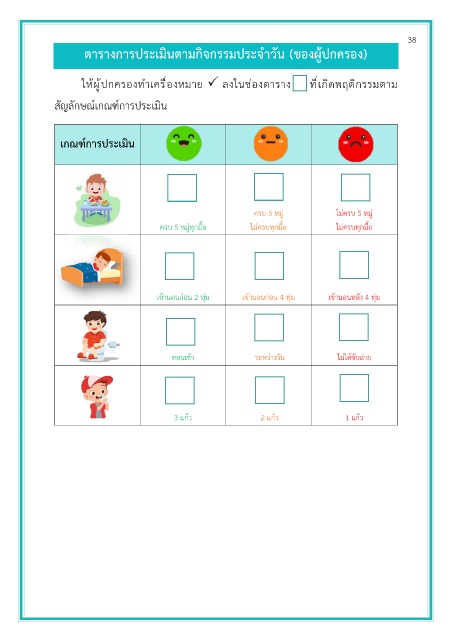 ตารางการประเมินตามกิจกรรมประจำวัน (ของผู้ปกครอง)
