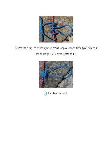2 Pass the big loop through the small loop a second time (you can do it three times if you need extra grip). 3 Tighten the knot.