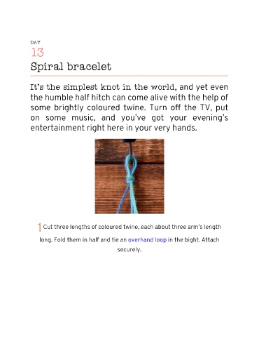 1 Cut three lengths of coloured twine, each about three arm’s length