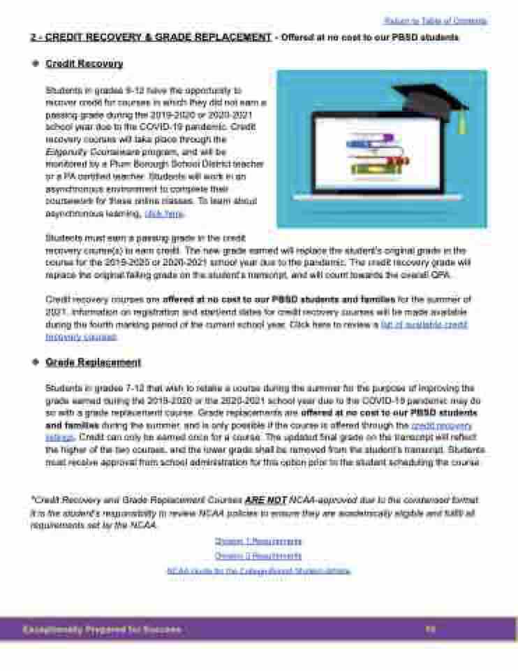 2 - CREDIT RECOVERY & GRADE REPLACEMENT - Offered at no cost to our PBSD students ❖ Credit Recovery