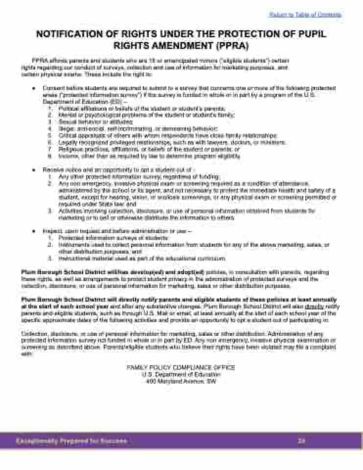 NOTIFICATION OF RIGHTS UNDER THE PROTECTION OF PUPIL RIGHTS AMENDMENT (PPRA)