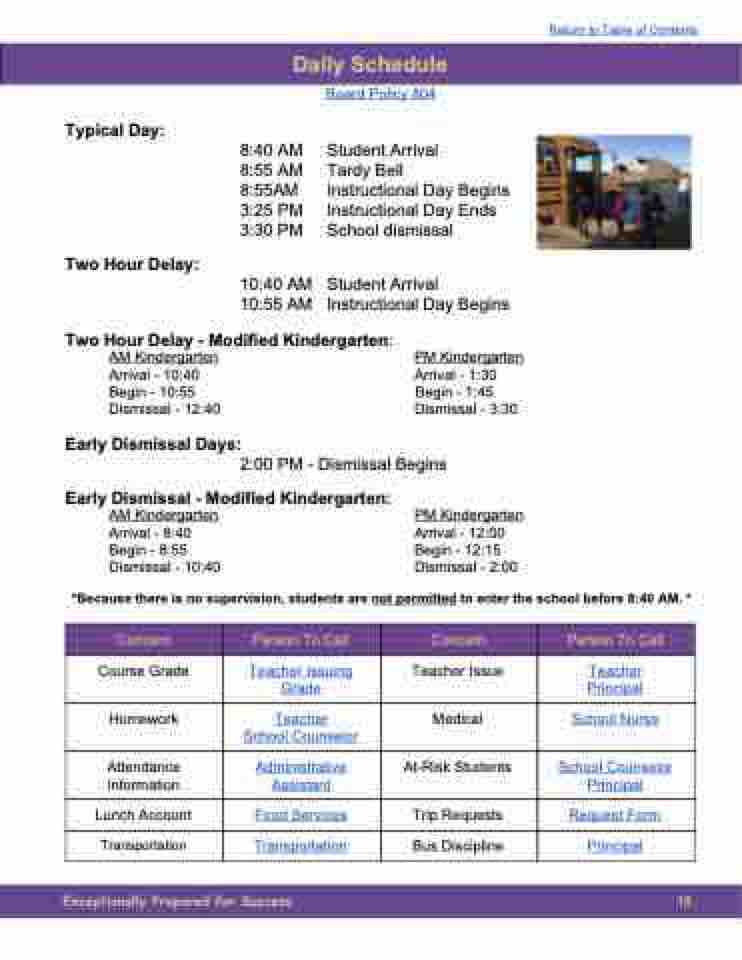 *Because there is no supervision, students are not permitted to enter the school before 8:40 AM. *