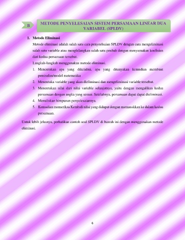 B METODE PENYELESAIAN SISTEM PERSAMAAN LINEAR DUA