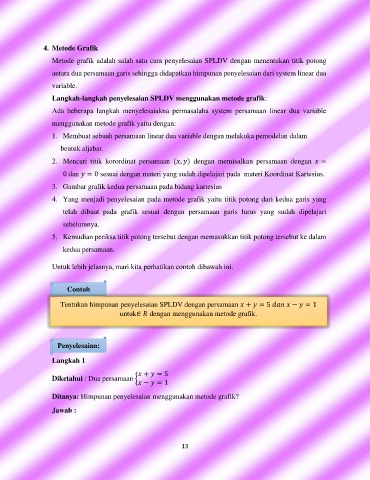 Metode grafik adalah salah satu cara penyelesaian SPLDV dengan menentukan titik potong