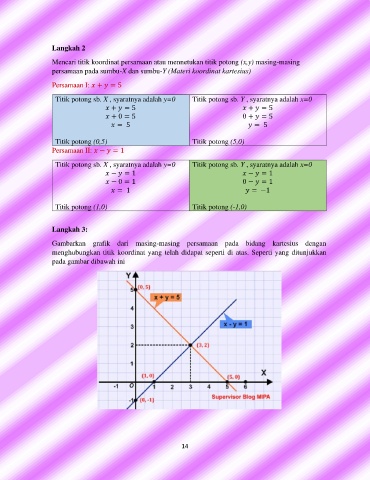Mencari titik koordinat persamaan atau mennetukan titik potong (x,y) masing-masing