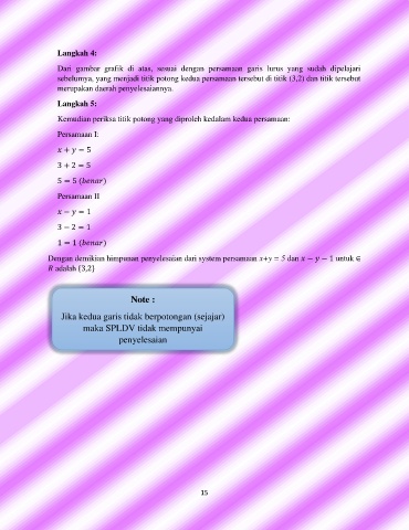 Dengan demikian himpunan penyelesaian dari system persamaan x+y = 5 dan    −    − 1 untuk ∈