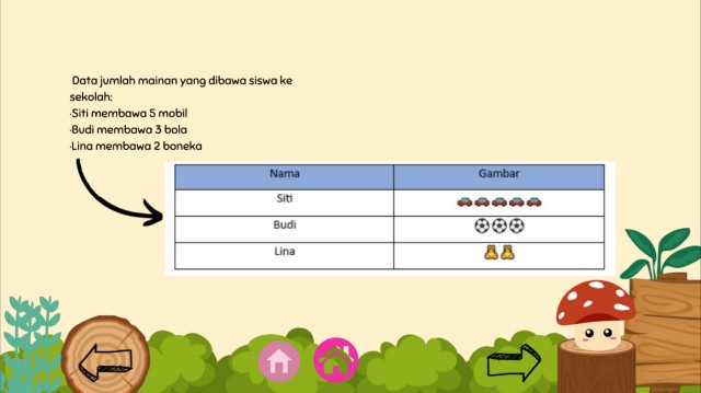 Tabel Gambar Data jumlah mainan yang dibawa siswa ke sekolah: ·Siti membawa 5 mobil ·Budi membawa 3 bola ·Lina membawa 2 boneka