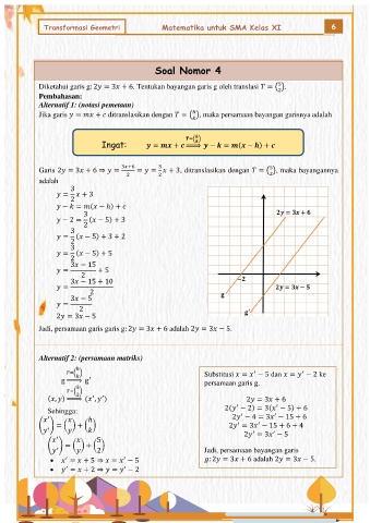 Garis 2 = 3 + 6 ⇒ = 3 +6 = = + 3, ditranslasikan dengan = ( ), maka bayangannya