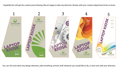 Hopefully this will get the creative juices flowing. We are happy to take any direction. Review with your creative department & let us know.
