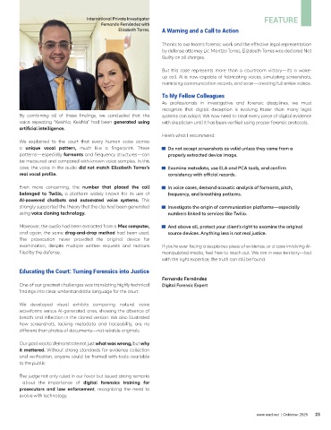 case, the voice in the audio did not match Elizabeth Torres’s     Examine metadata, use ELA and PCA tools, and confirm
