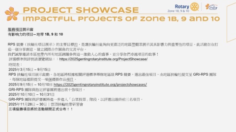 RPS 扶輪社項目展示啟動。各地區將根據相關評選標準舉辦地區級 RPS 競賽,選出最佳項目,由地區扶輪社提交至 GRI-RPS 團隊