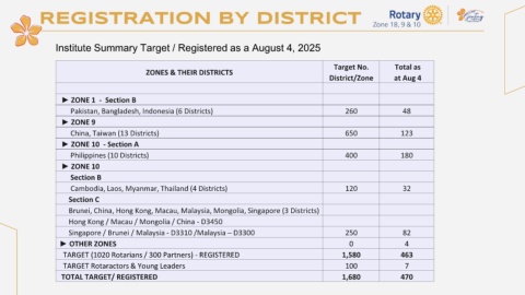 TARGET (1020 Rotarians / 300 Partners) - REGISTERED 1,580 463