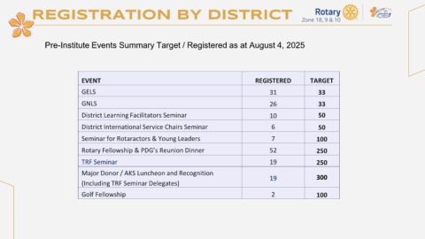Pre-Institute Events Summary Target / Registered as at August 4, 2025