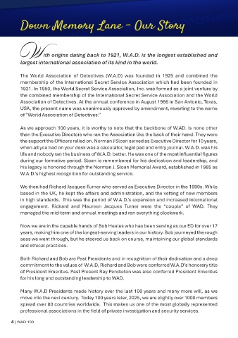 The World Association of Detectives (W.A.D) was founded in 1925 and combined the