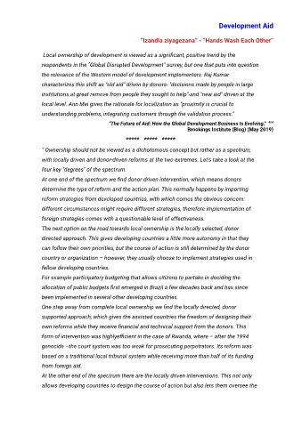 characterizes this shift as "old aid" driven by donors- "decisions made by people in large