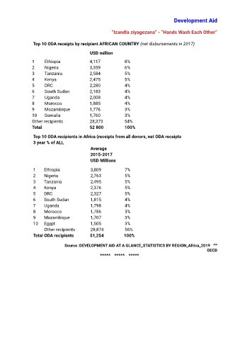 Top 10 ODA receipts by recipient AFRICAN COUNTRY (net disbursements in 2017)