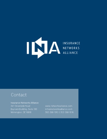 Contact Insurance Networks Alliance 3411 Silverside Road www.networksalliance.com Baynard Building, Suite 100 info@networksalliance.com Wilmington, DE 19810 302-268-1010 | 302-268-1016