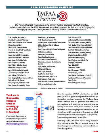 funding gap this year. Thank you to the following TMPAA Charities contributors*: