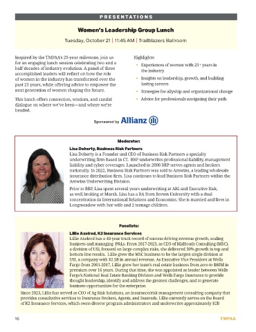 insurance distribution firm. Lisa continues to lead Business Risk Partners within the