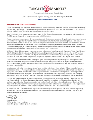 in sunny Scottsdale, Arizona for the TMPAA Annual Summit. On behalf of the TMPAA staff and advisory board, I am pleased to