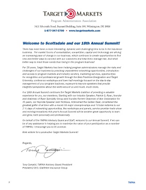 On behalf of the TMPAA Advisory Board and Staff, welcome to our Annual Summit. If we can