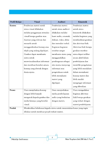 Profil Belajar Visual Auditori Kinestetik