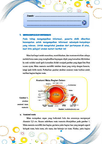 diameter 2,5 cm. Secara sederhana mata manusia ditunjukkan pada gambar 1.