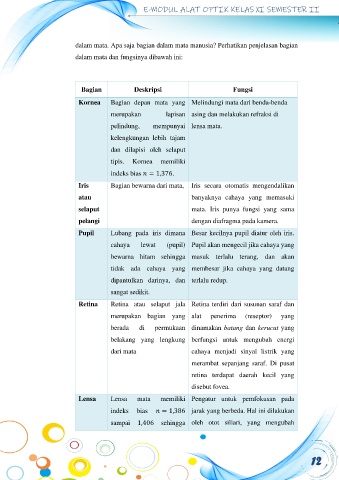 dalam mata dan fungsinya dibawah ini: