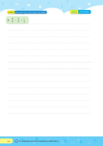 0 1 5 4 7 9 2 9 หน่วยที่ ๑ เศษส่วน และก�รบวก ก�รลบ ก�รคูณ ก�รห�รเศษส่วน ฝ.๑.๒๖/ผ.๒๖ 3. 8 – 2 + 1 9 5 3 ๖๘ 1 5 7 9 6 4 2 0 สถาบันสงเสริมการสอนวิทยาศาสตรและเทคโนโลยี (สสวท.)