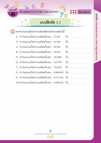 1. หาค่าประมาณเป็นจ�านวนเต็มหมื่นของจ�านวนต่อไปนี้