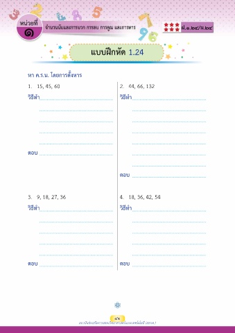 3. 9, 18, 27, 36 4. 18, 36, 42, 54