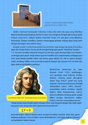 kepadanya. Dengan demikian, Galileo menganggap gesekan sebagai gaya yang sama