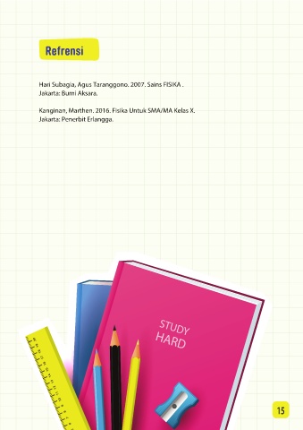 Refrensi Hari Subagia, Agus Taranggono. 2007. Sains FISIKA . Jakarta: Bumi Aksara. Kanginan, Marthen. 2016. Fisika Untuk SMA/MA Kelas X. Jakarta: Penerbit Erlangga.
