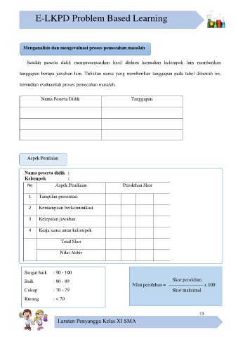 Setelah peserta didik mempresentasikan hasil diskusi kemudian kelompok lain memberikan