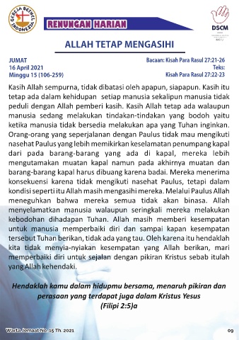 peduli dengan Allah pemberi kasih. Kasih Allah tetap ada walaupun