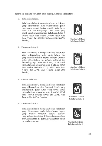 Berikut ini adalah penjelasan kelas-kelas (Golongan) kebakaran: