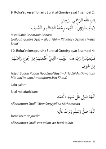 9. Roka’at kesembilan : Surat al Quroisy ayat 1 sampai 2 :